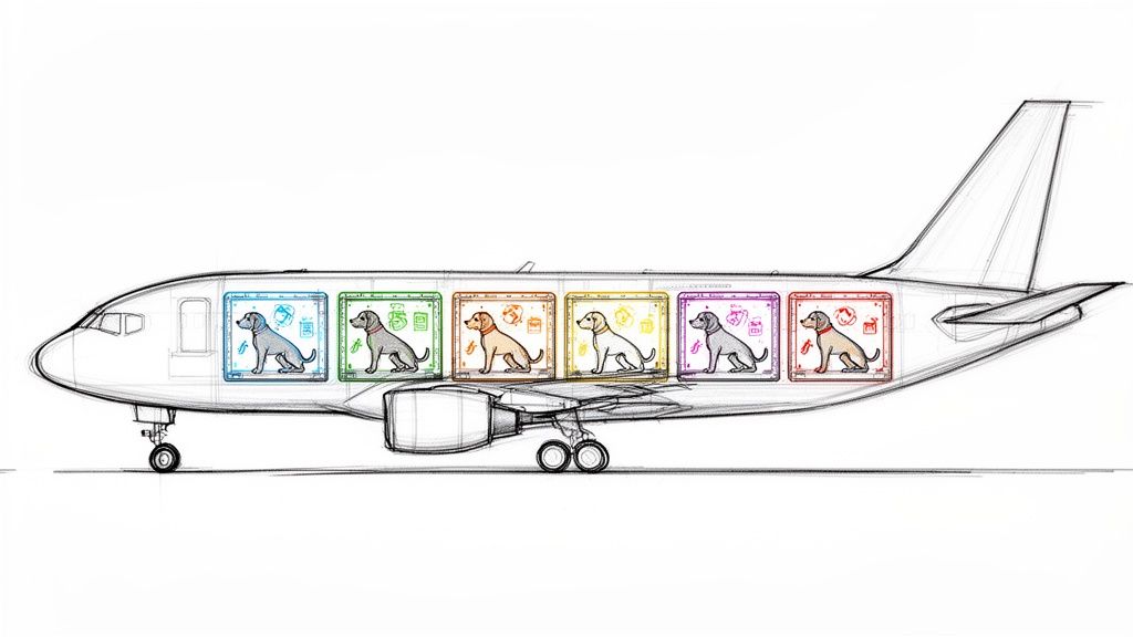 Documentation: As with any airline, having the right paperwork is key. You'll need a valid health certificate issued by a licensed veterinarian close to the travel date. For a detailed breakdown of what's needed, you can find more information about the dog health certificate for travel to make sure you're fully prepared.