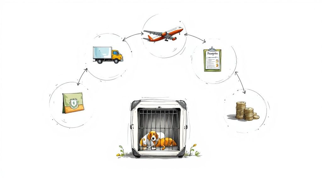 Getting a handle on these elements ahead of time is the best way to budget without stress. While the transportation fee gets most of the attention, a pet's big adventure can also come with significant health-related expenses. For a great resource on what to expect from veterinary bills, check out this guide on Understanding Pet Surgery Costs.