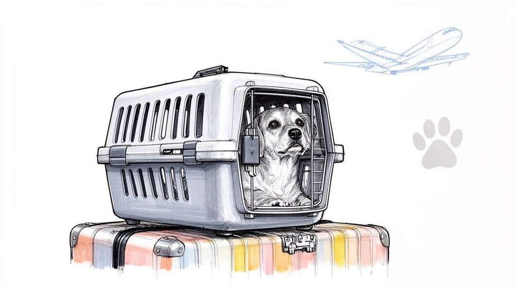Your best move is to go directly to your airline’s website, find their pet travel policy, and print it out. Highlight the crate requirements and stick it with your other documents. For a deeper dive into the world of air travel with pets, our guide to flying with pets internationally is packed with more tips for a smooth trip. A few minutes of double-checking now can save you a world of stress later.