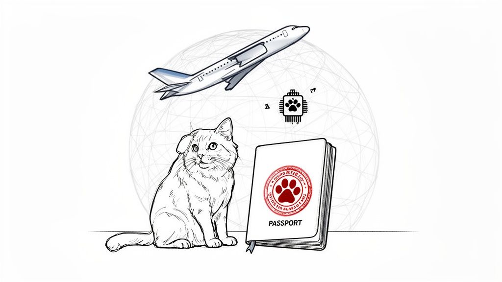 Before anything else, your pet needs a microchip. This tiny implant is their permanent identification, linking them directly to you and their health records. It’s a simple procedure your vet can do in minutes, but it's the official starting line for your pet’s travel adventure.
