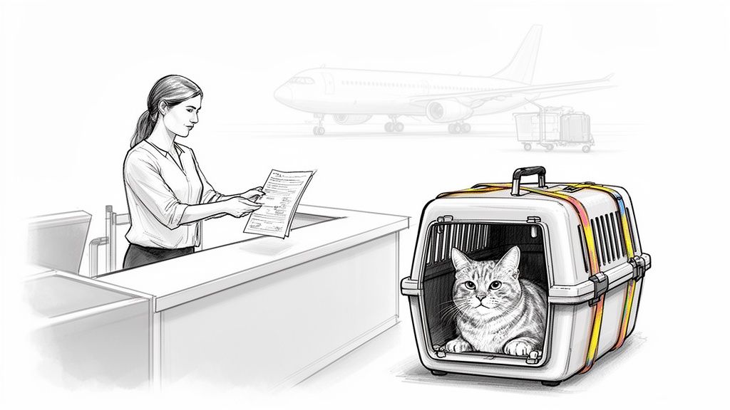 Getting the paperwork right is very important. Roughly 2 million domestic animals take to the skies on commercial flights in the U.S. each year, and you’d be surprised how many are feline flyers. Cats account for 22% of all pet journeys, and that number is on the rise. In fact, they're expected to be the fastest-growing segment in the pet travel market through 2033. If you're curious about the numbers, you can explore detailed pet travel statistics to see the full picture.