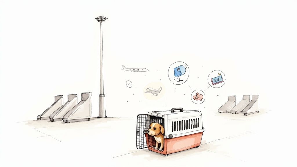 So, you're thinking about flying with your pet. The key is planning ahead. You’ll need to figure out if your pet is truly up for the trip, decide between the cabin and cargo, get a handle on airline rules, and pull together all the right paperwork. Nailing these paw-sentials early is the secret to a trip that’s smooth for both of you.