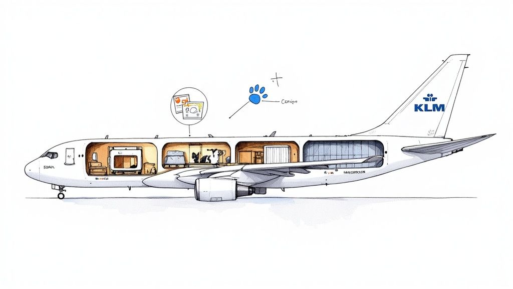 Flying with your furry co-pilot can be a breeze, but getting a handle on the KLM Airlines pet policy is your first and most important step. In short, small cats and dogs can often travel right there with you in the cabin, while larger pets fly safely in a climate-controlled section of the hold.