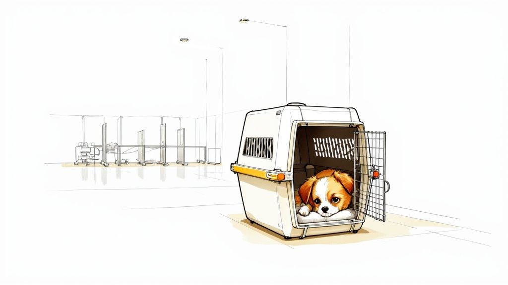 A great pet airline travel carrier is half the battle, but the real win is having a calm, happy pet inside it. The secret to a stress-free travel day isn't just about the gear; it's about helping your pet see their carrier as a safe space long before you even think about booking a flight. This simple process can turn a scary box into a familiar, cozy den.
