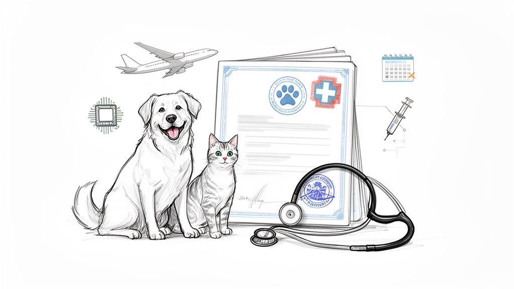 Getting the correct government endorsement is a critical final step in this journey. To learn more about this specific stage, our comprehensive guide on how to get a USDA-endorsed pet health certificate offers a detailed checklist to ensure your paperwork is perfect before submission. Mastering these core requirements is the first step to ensuring your travel plans are 'paw-sitive' from beginning to end.