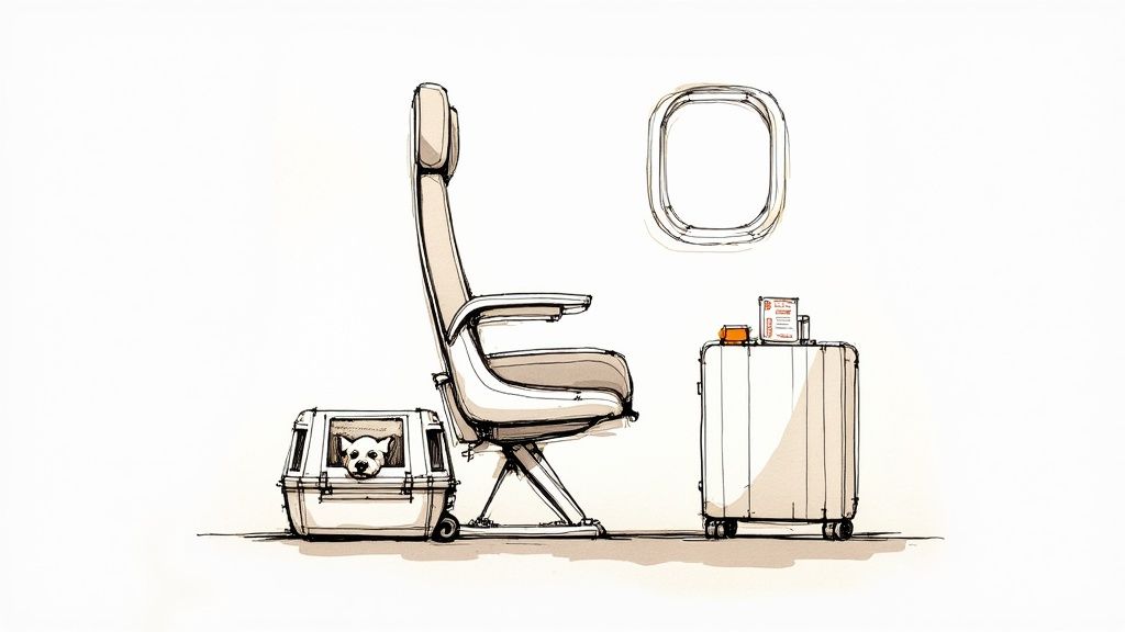 The reservation agent will check for pet availability on your flight. If there’s room, they’ll add a note to your reservation confirming your pet’s spot. This step is key for a stress-free travel day. A good tool for keeping all your booking details organized is our pet travel planner, which helps you track confirmation numbers and travel dates all in one place.