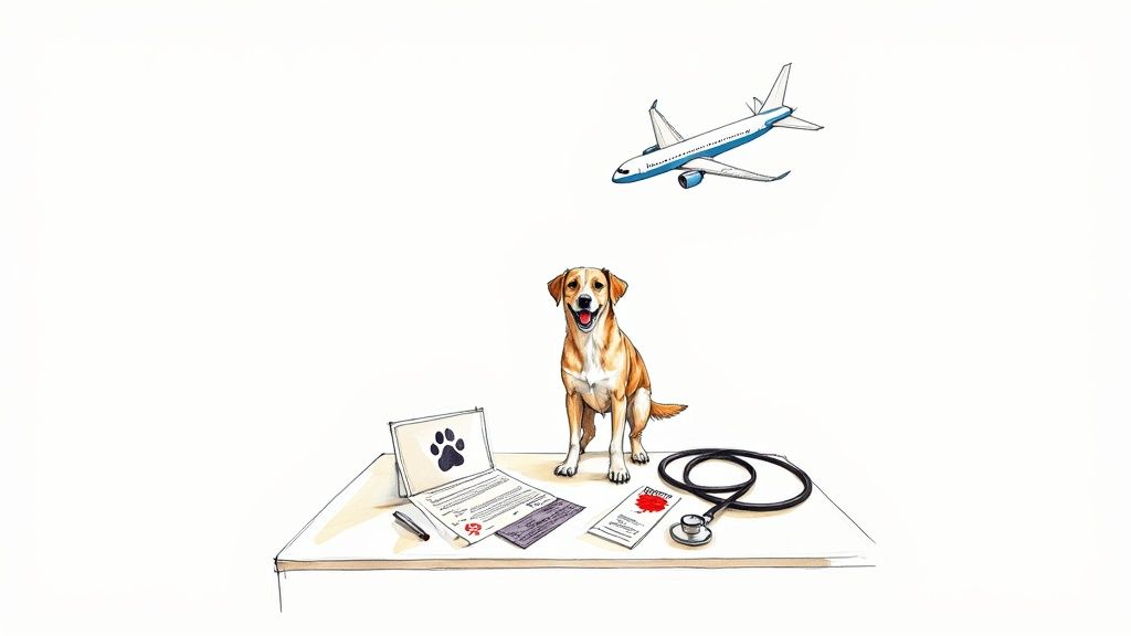 Planning to bring your furry co-pilot on your next trip? Before you jet off, you’ll need a travel health certificate for dogs. Think of this as your dog's official passport to adventure—it’s a formal document from a licensed veterinarian confirming your pet is healthy, up-to-date on vaccines, and ready for takeoff.