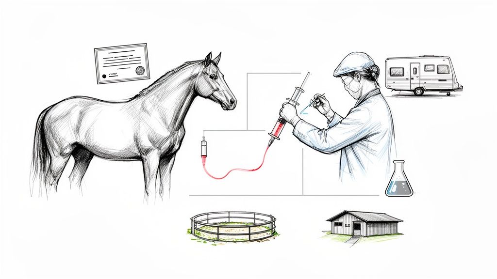 As you can see, it just takes one bite from a common fly to pass the disease from an infected horse to a healthy one. The whole testing process is simple, efficient, and very important for herd health. Understanding it can also help when you're getting ready for other travel needs; you can learn more about managing your animal's travel documents in our guide to pet health certificates for travel.